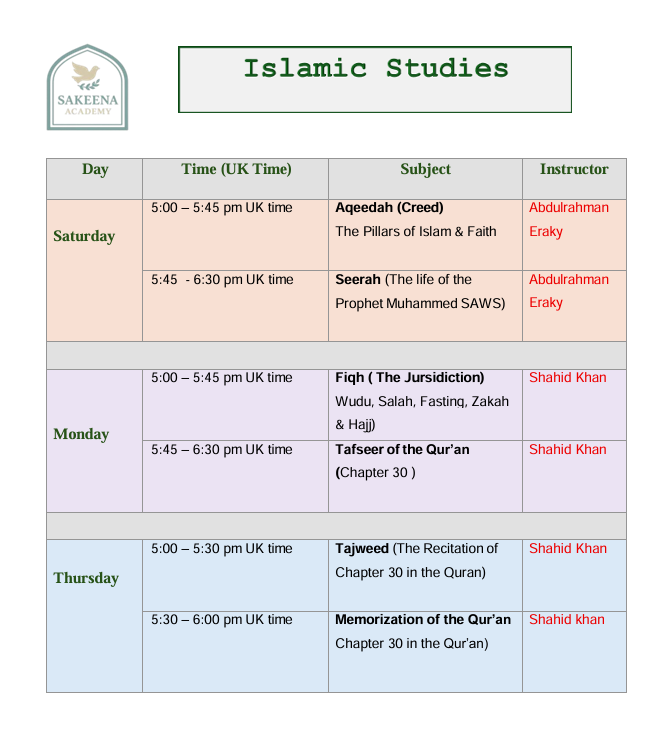 Saturdays – Aqeedah & Seerah (with Abdulrahman Eraky):